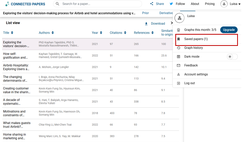 De modo que cuando ingresemos a nuestros perfil podemos recuperar los artículos científicos guardados (Saved papers).