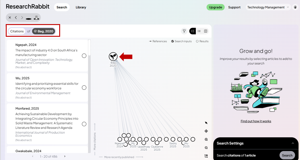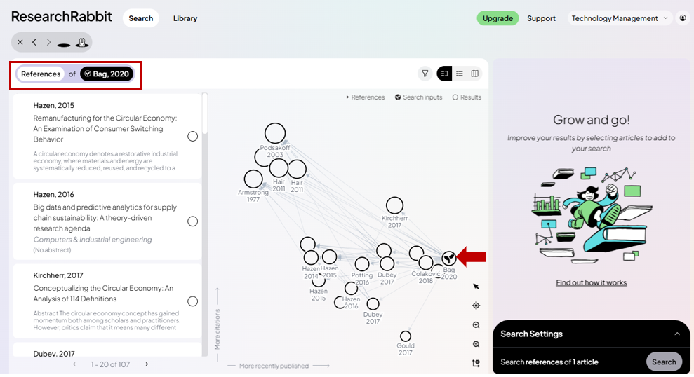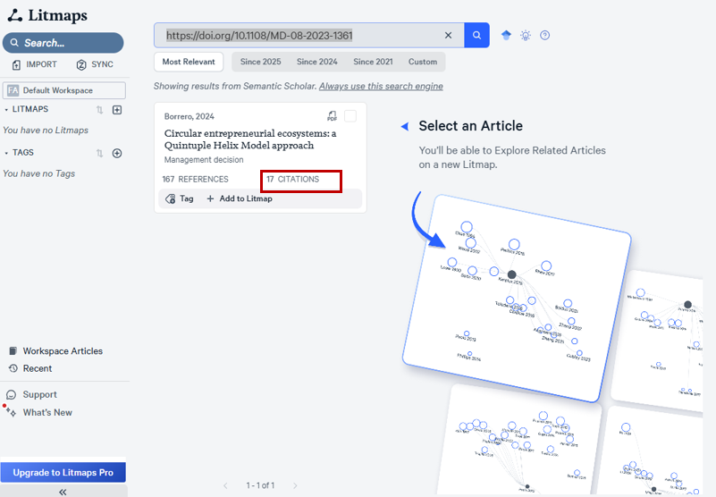 Litmaps da como resultado la posibilidad de revisa referencias y citas del artículo de origen.
