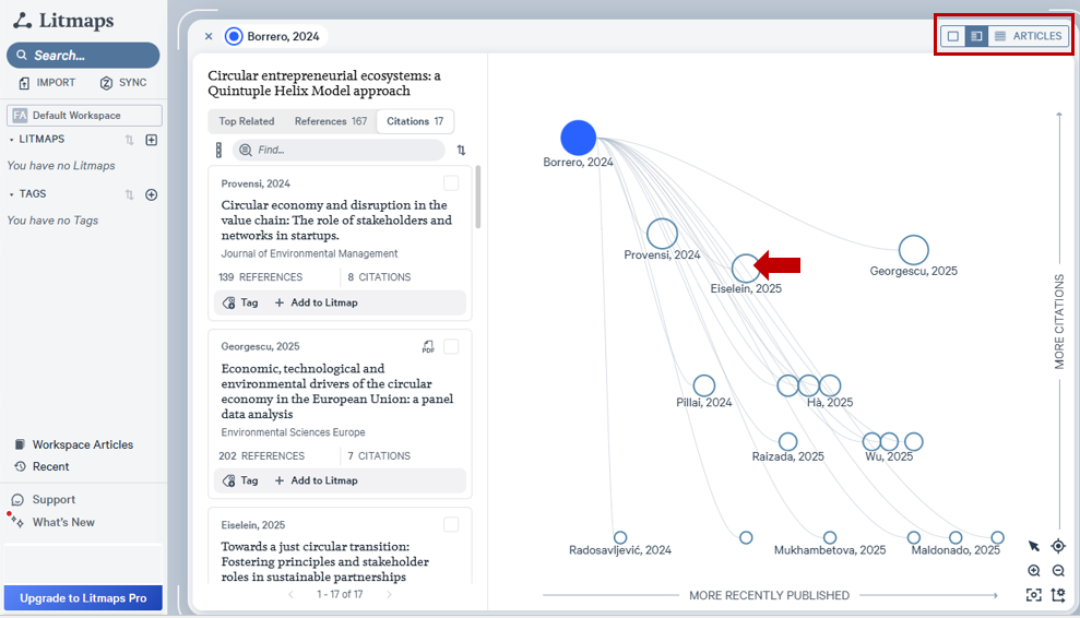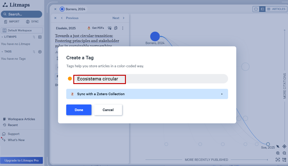 Crear un número limitado de mapas (“Litmaps”; por ejemplo, 1 o 2) en la versión gratuita.