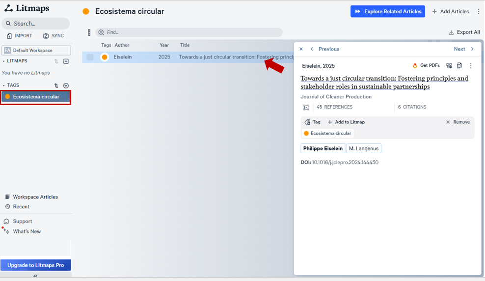 De modo que cuando ingresemos al Tag «Ecosistema circular» podremos recuperar el artículo académico de Eiselein, 2025