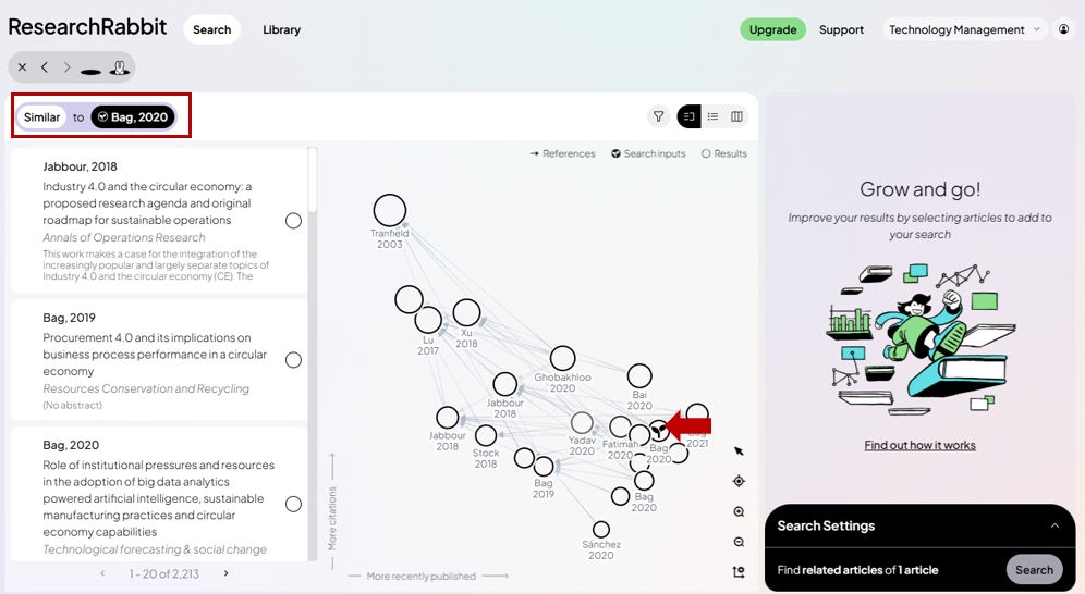El usuario debe seleccionar un artículo relevante acerca de su tema de investigación, que será considerado como el «artículo semilla». A partir de este artículo de origen, los resultados se mostrarán en forma de gráfico. El gráfico indica la correlación entre los artículos, no necesariamente el número de citas recibidas por cada uno.