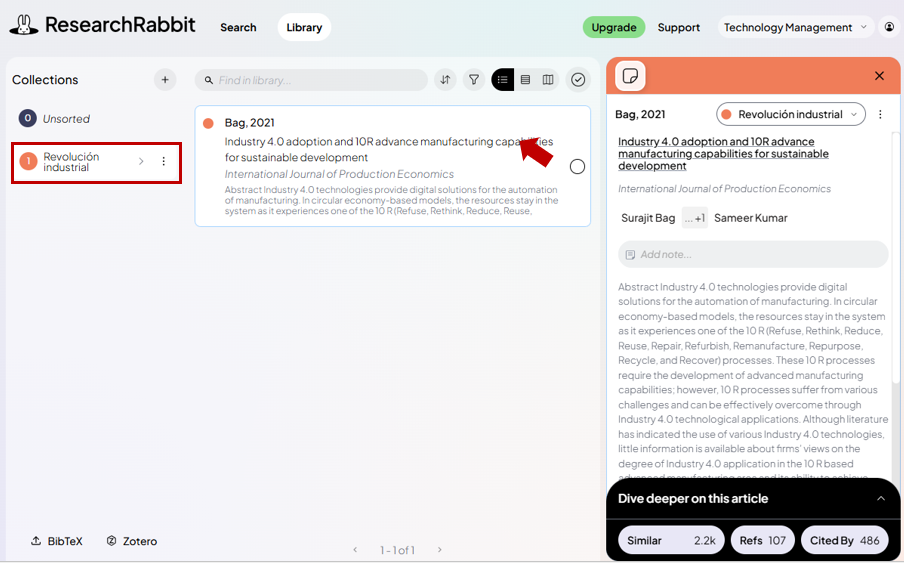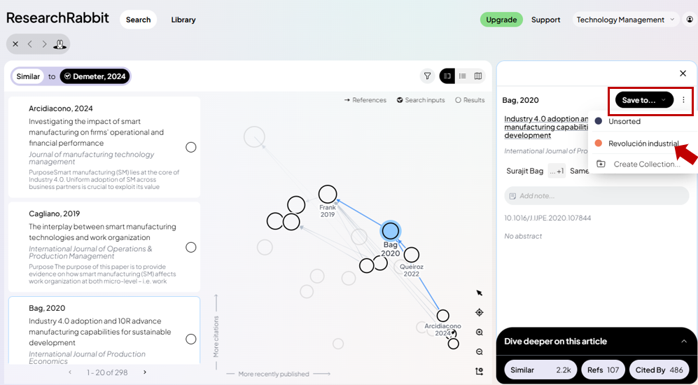 ResearchRabbit permite crear colecciones; para esto se debe: