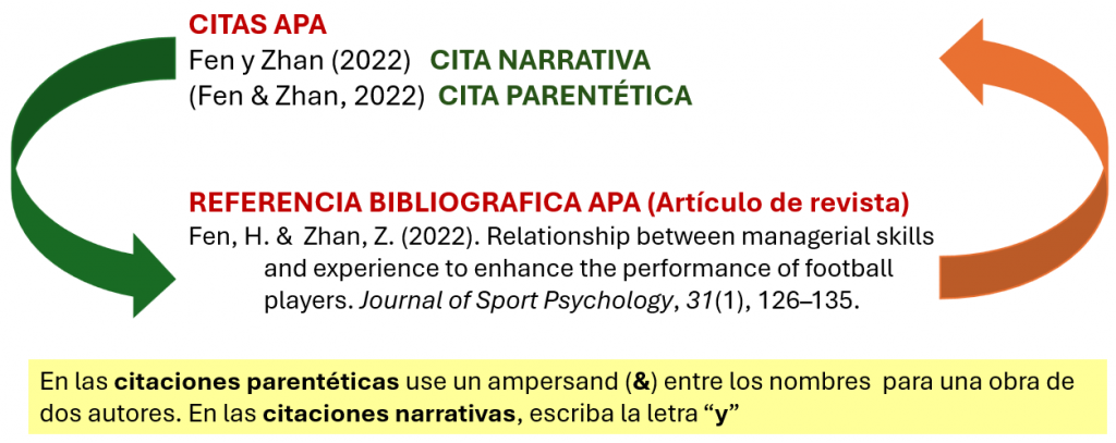 Cita narrativa: se presenta con base en el autor o autores, poniendo atención en quién escribió la obra. ENFASIS EN EL AUTOR | Ramírez y Torres (2021) afirman que “la motivación influye directamente en los logros académicos” (p. 15). |